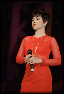 Nhu Quynh, singing her top hit "Chuyen Hoa Sim", a song written by Anh Bang. She followed with "Quynh Huong", a Trinh Cong Son song. |